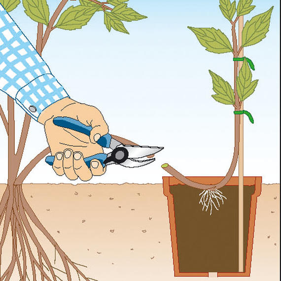 Bei der vegetativen Vermehrung durch Absenker entsteht durch das Abtrennen eines bewurzelten Pflanzenteils ein Klon der Mutterpflanze